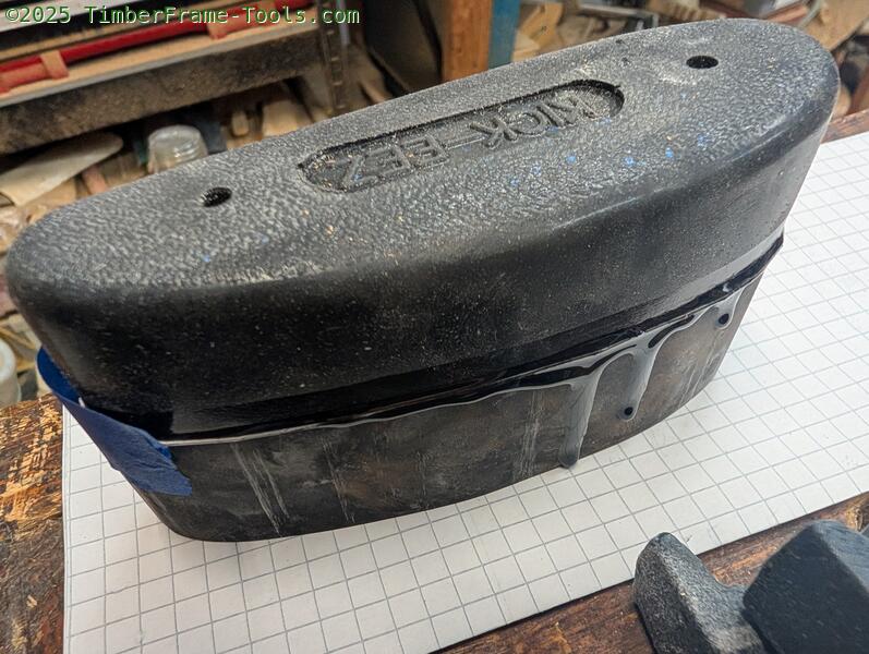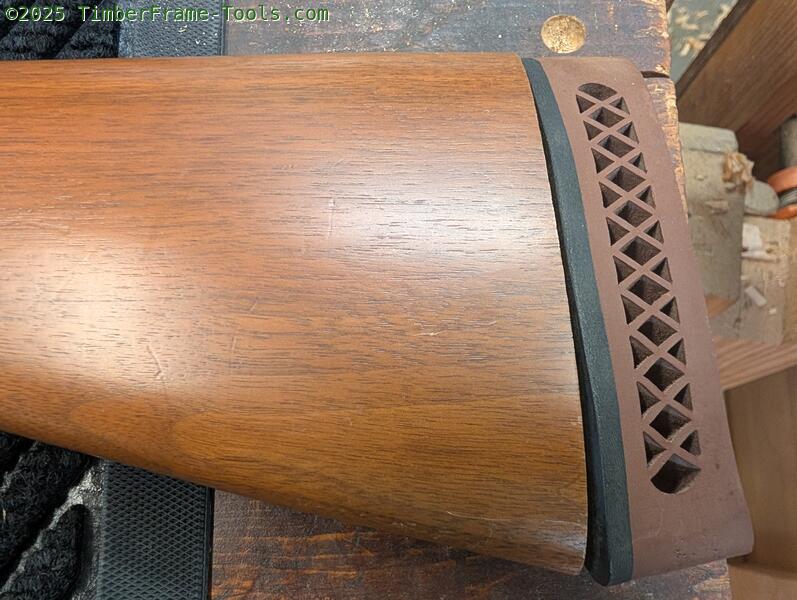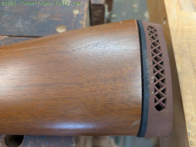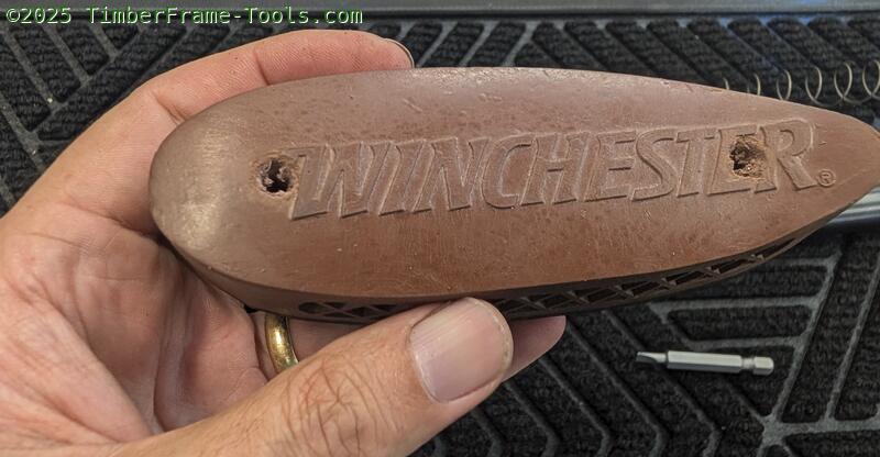 We knew from the auction photos that the recoil pad was wonky. My guess is the one on it before the auction was decomposed so someone slapped this on on it in a hurry to make it look better in the auction.