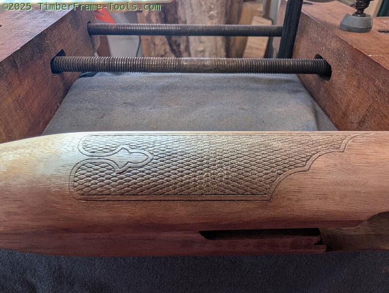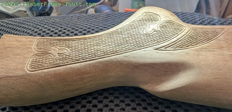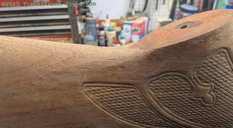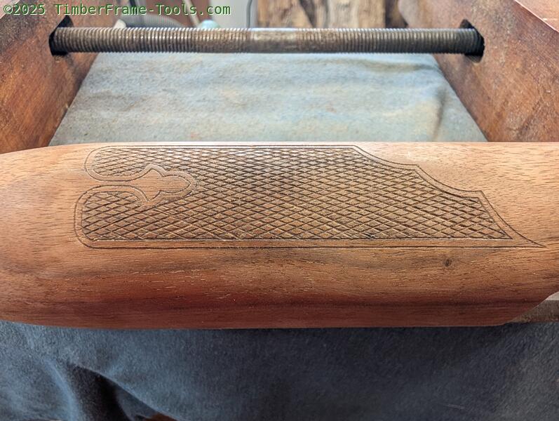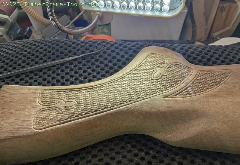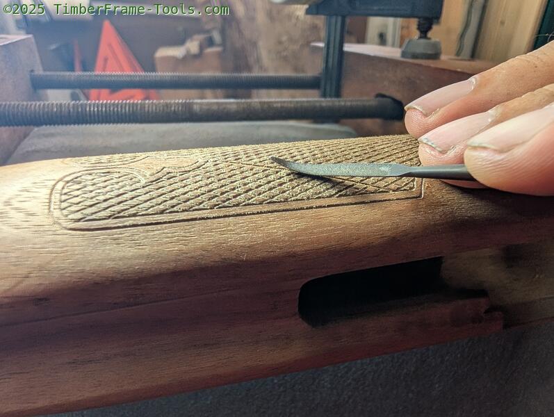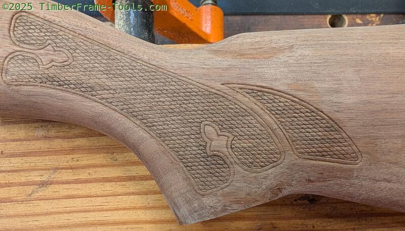 Time to clean up my mistake.  The water rinse after the stripping had caused the checkering to become less pronounced, as it essentially decompressed the pressed checkering.