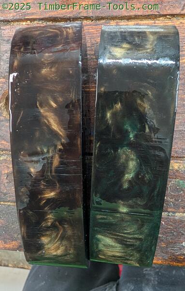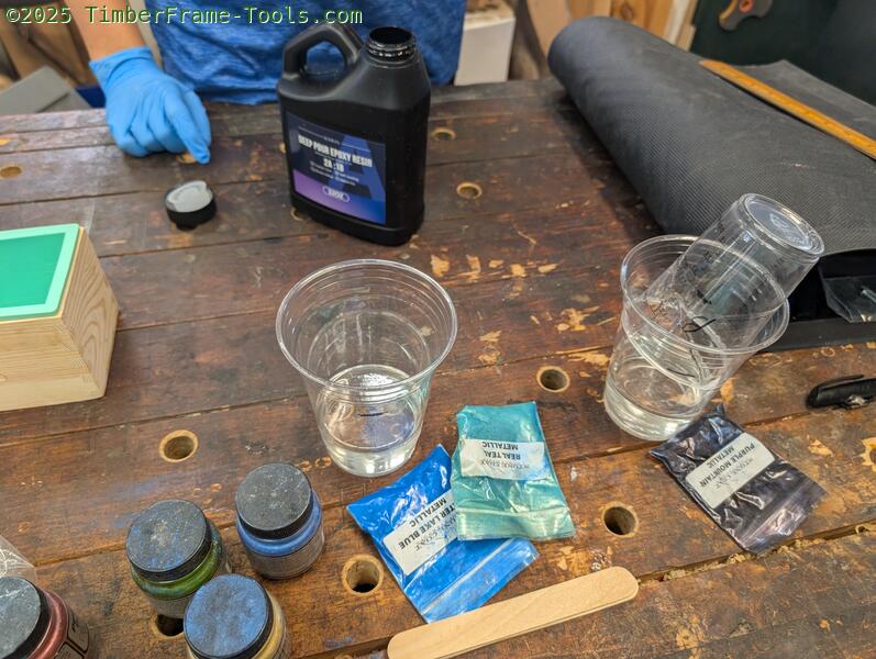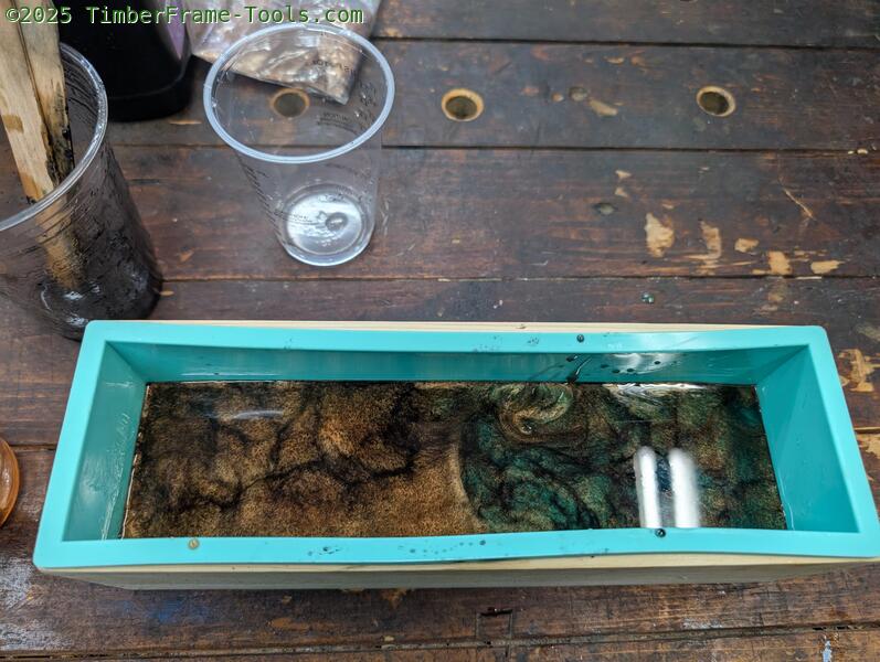 Since we had to lengthen the stock by an inch and a half, we needed to pour a deep spacer.   The color choices can be overwhelming.  My nephew looked at a bunch of the other spacers we had made, and chose to go with Black and Gold.  Since the depth is over half an inch we had to use deep pour epoxy]]. We mixed up one batch with [[[mars black pigment and one with Gold Perl Ex pigment.