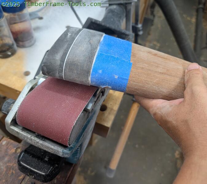 I use one layer of blue painters tape to mask off the wood. The tape doesn’t really protect anything, it is more a visual indicator that I can see when the sander starts hitting the tape.