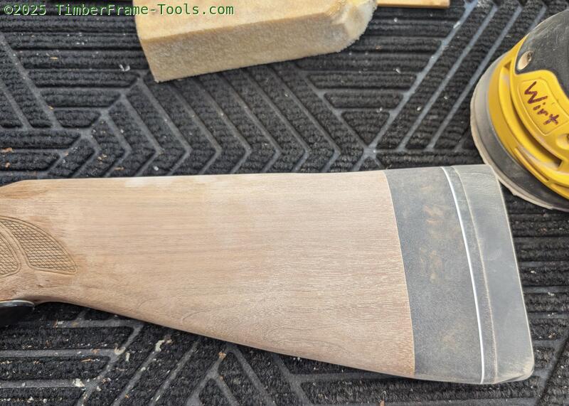 After I get close with the belt sander, I switch to a random orbit sander and sand with 180, 220, and 320 grits.