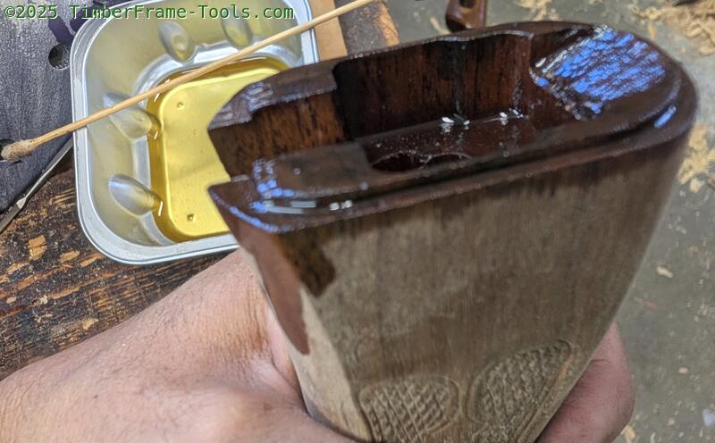 It is important to put finish on the end-grain wood that meets up with the gun. People typically oil their guns then stand them on the butt pad and let them sit. Gravity makes the oil run down the metal and then hit the wood where it gets absorbed into the wood if it is not sealed. Gun oil is not good for the wood and actually causes it to get soft and spongy. This is the one spot in the gun where you don’t want the wood to be softer. By putting Tung oil on the end, it should help prevent gun oil from getting in the wood.