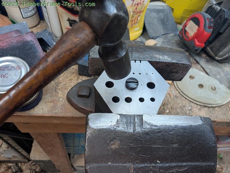 It seems oxymoronic that you fix a chewed-up screw with a hammer. This photo is deceiving, the entire hammer head is smaller than my thumb. Light taps on screw slot that has been chewed up by a bad screwdriver will restore it to near its original shape. Fortunately there was only one screw on the gun that was a bit damaged. The rest were perfect.  This jewelers riveting blocks are very handy for fixing screw heads.