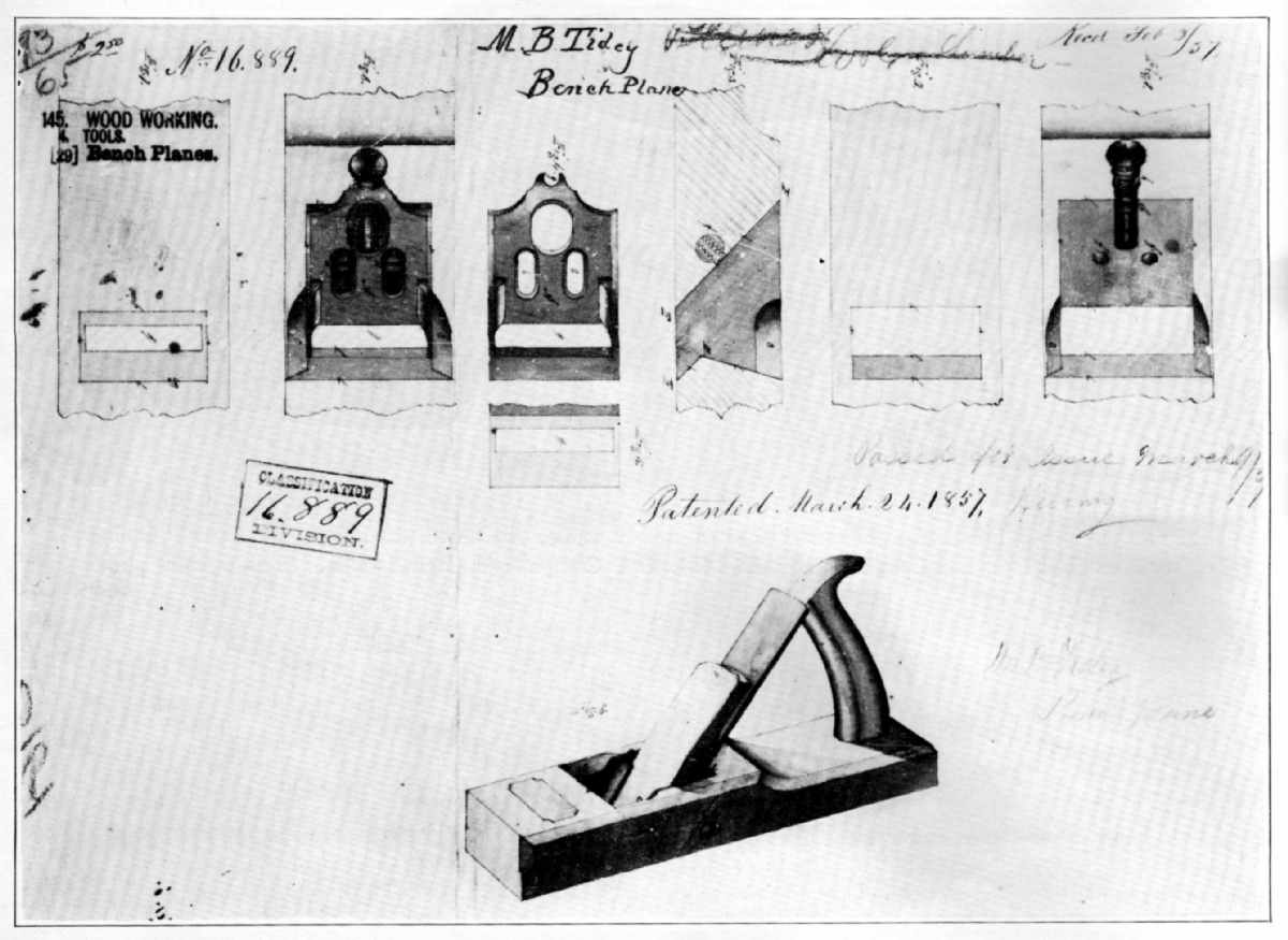First to simplify the manufacturing of planes; second to render them more durable; third to retain a uniform mouth; fourth to obviate their clogging; and fifth the retention of the essential part of the plane when the stock is worn out.[18]