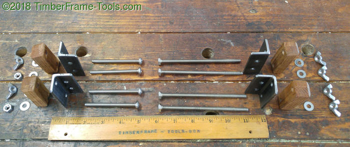 My second attempt for mounting hardware was to use angle iron that bolted to a dowel or block of wood. I originally thought that maybe the dowel could register in a groove on the saw frame that would keep it plumb to the frame. I did not go that route and chose to go with woot blocks, but I may come back to it.